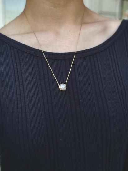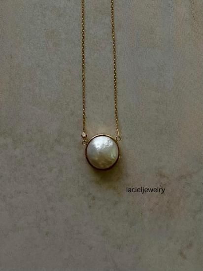 マベパールのセミロングネックレスは、自然の貝のような魅力が溢れる逸品です。表面には少し凸凹があり、その一点一点が世界に一つだけのジュエリーとして、特別な存在感を放っています。